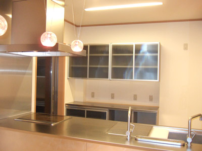 無機質のようで光るキッチン。床は大理石・床暖房付で快適。
